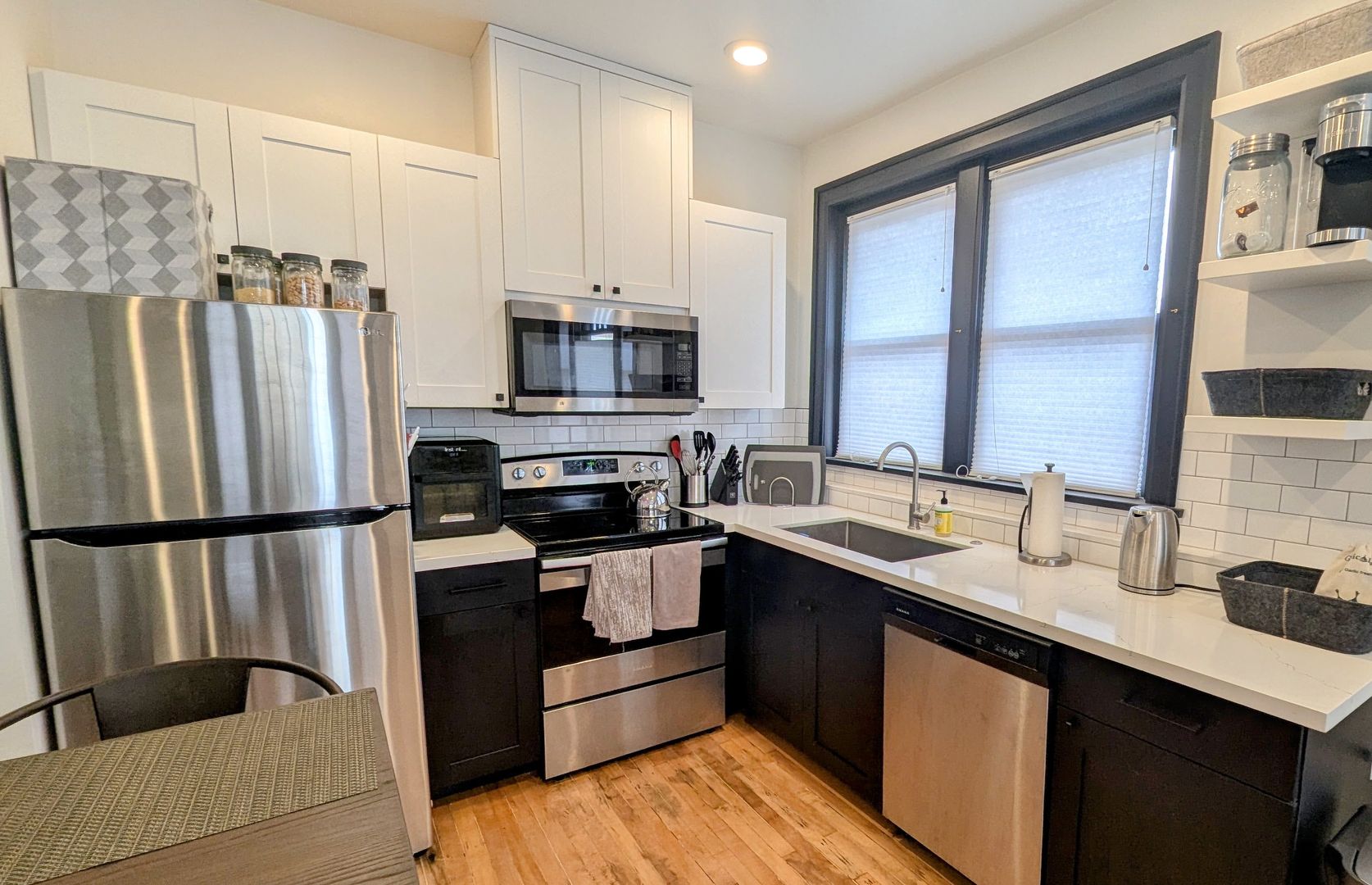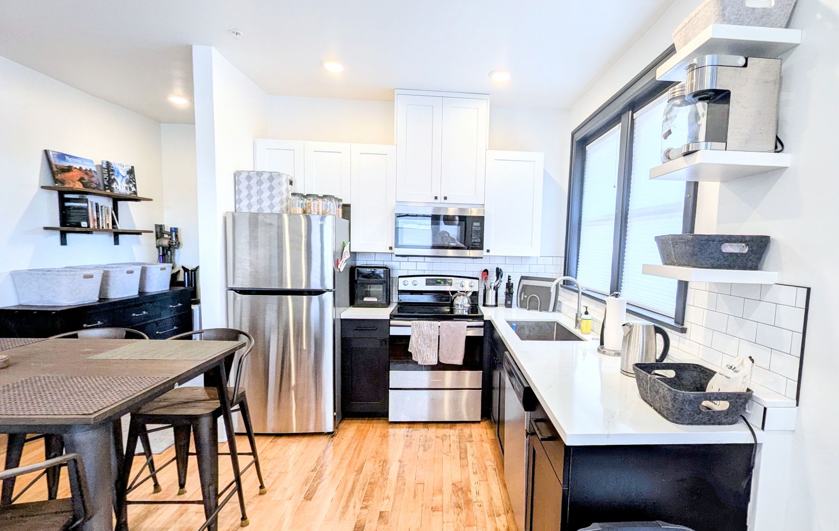 Amenities: In-unit washer/dryer combo and butcher block and concrete countertops.