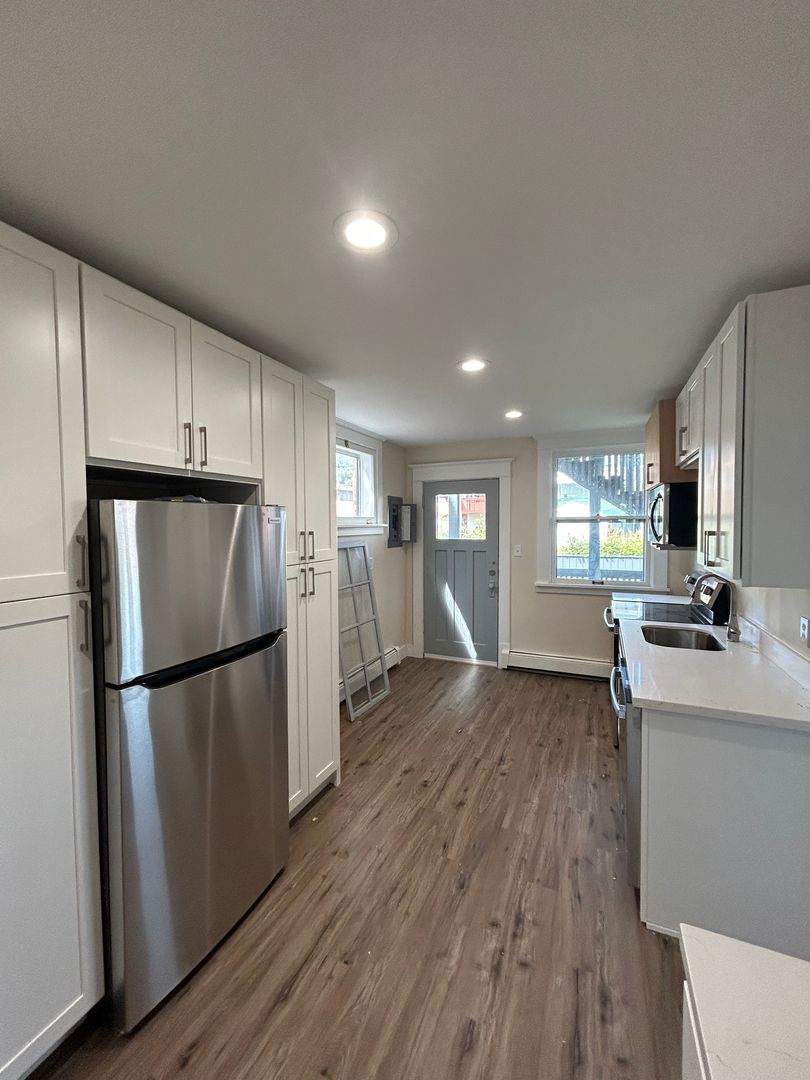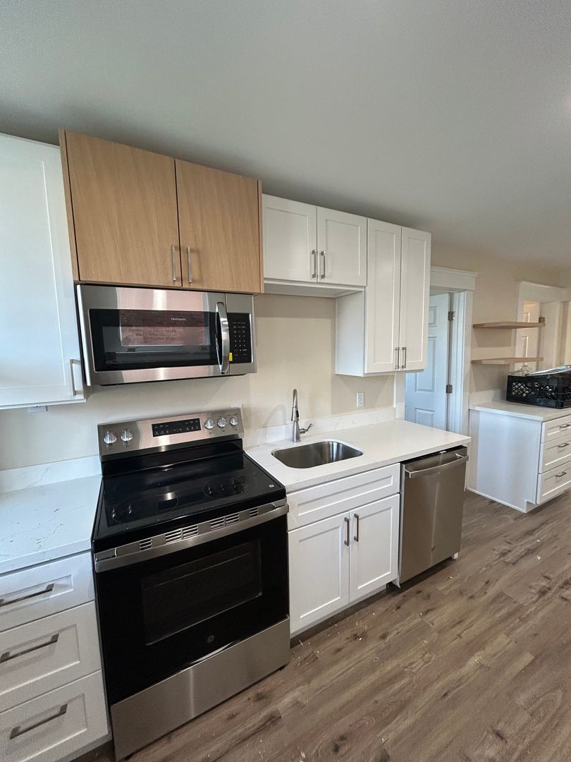 The kitchen includes ample cabinetry, updated countertops, and essential appliances—including all new appliances.