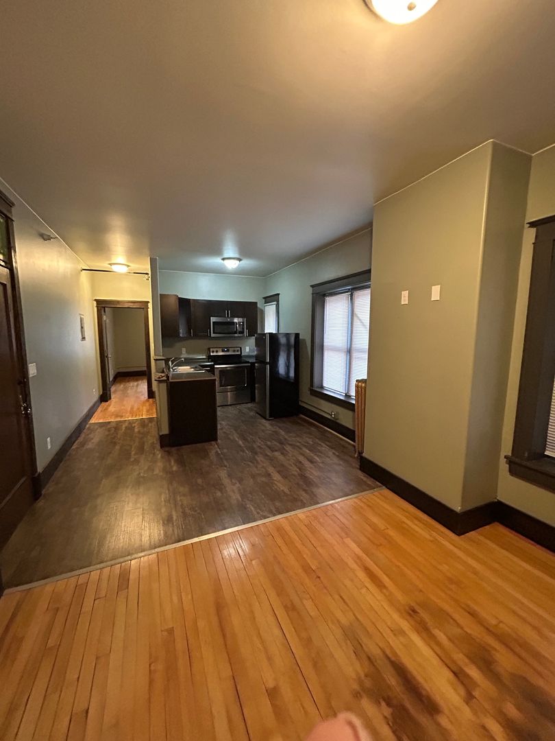 Modern kitchen with hardwood floors
