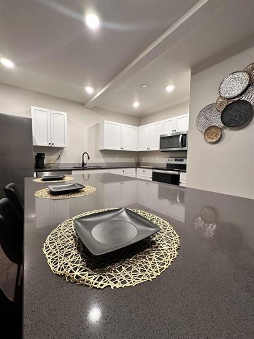 Dishwasher, Dryer, Furnished, Hardwood floors, Heat, Kitchen island, Linen closet, Microwave, Mirrors, Refrigerator, Storage space, Stove and oven, Washer